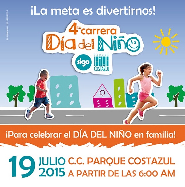 Ya están abiertas las inscripciones para que niños y adolescentes participen en la 4ta Carrera Infantil “Día del Niño” Parque Costazul-SIGO que se realizará el domingo19 de julio a partir de las 6 de la mañana.