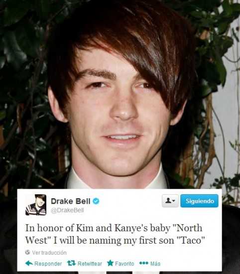 Por ejemplo, recientemente, Drake Bell dijo a través de su cuenta de Twitter: ‘En honor al bebé de Kim and Kanye, ‘North West’, yo le pondré a mi primer hijo ‘Taco’.’.