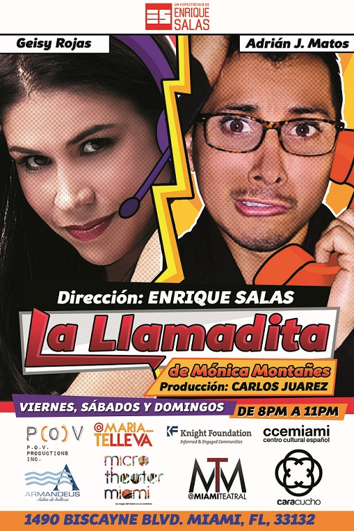 Luego de su éxito en »Divorciémonos cariño» en Venezuela, el joven zuliano brilla en Miami con la pieza de Mónica Montañés; “La llamadita”, la cual es dirigida por otro exitoso venezolano, Enrique Salas. La pieza en cuestión, producida por Carlos Juares, está siendo presentada a taquilla llena en el Micro-Teatro Biscayne, los viernes y sábados de 8 a 11pm y los domingos de 7 a 10pm. Como se sabe, esa nueva forma de presentar piezas teatrales, ha tenido gran auge en Latinoamérica y ha sido ventana para muchos talentos en todas las áreas del arte.