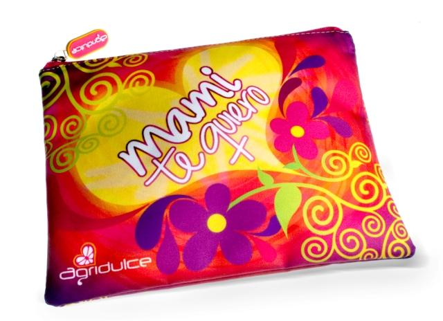 También tenemos unos frescos bolsos para maquillaje de gran capacidad y excelente tamaño con un estampado dedicado a la madre en su día, los cuales no ocuparán más del espacio requerido dentro de la cartera de la mamá Agridulce.