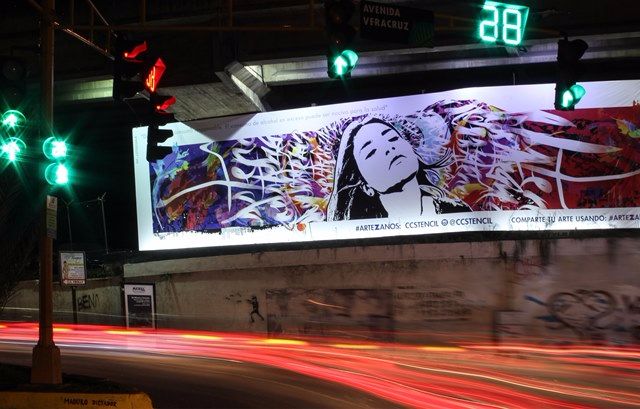 El artista gráfico venezolano Alex Siniscalchi no deja de lamentar la situación de confrontación que vive su país, así como la fuerte crisis que afecta a todos sus coterráneos, por lo que quiso dar su aporte a través de su marca CCSTENCIL, con la cual realizó el diseño de la icónica valla ubicada al final de la avenida principal de Las Mercedes, Caracas, como un reconocimiento y obsequio a toda Venezuela, llevando además un mensaje de fuerza y esperanza. Vale resaltar que CCSTENCIL no cobró honorarios por la obra.