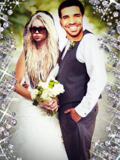 Cada vez más excéntrica, Amanda Bynes retuiteó una fotografía donde se le ve con vestido de novia y un novio, con cara de Drake.