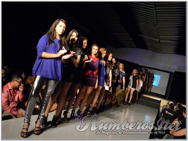 Al ritmo de “S&M” de Rihanna las 19 participantes vestidas de pantalón y franela negra desfilaron por la pasarela desplegada estratégicamente a la vista de la concurrencia, medios de comunicación y jurado el cual estuvo integrado por reconocidas personalidades del mundo del modelaje. Eva Herbert, finalista de Chica E! 2011 y el actor Hector Peña fueron los encargados de conducir el evento.