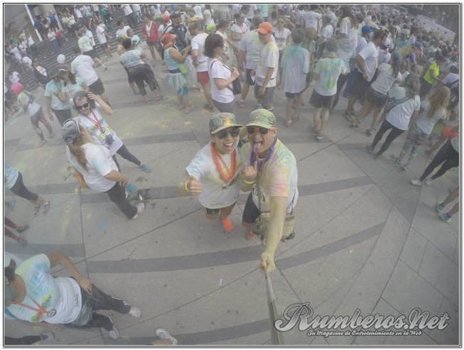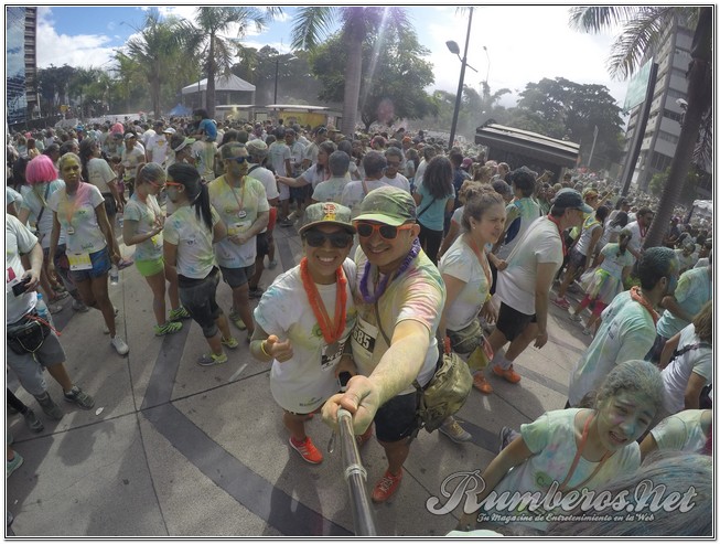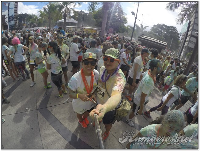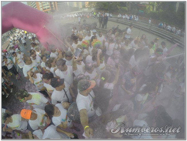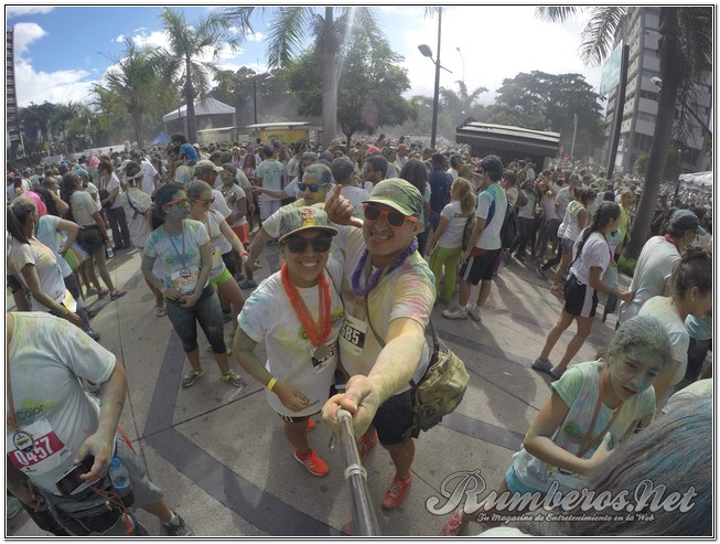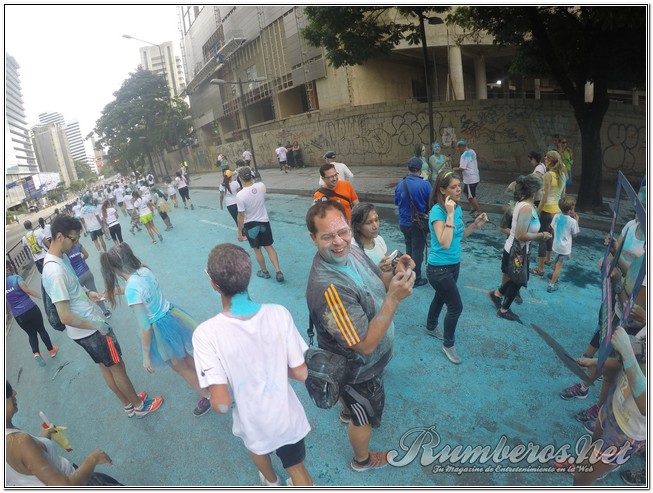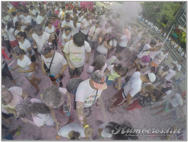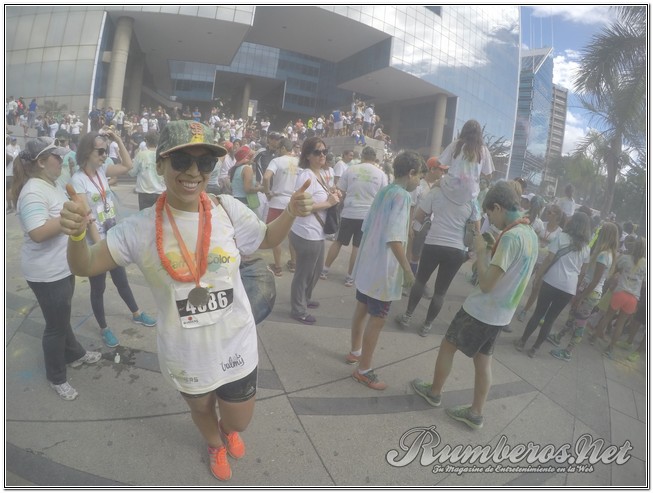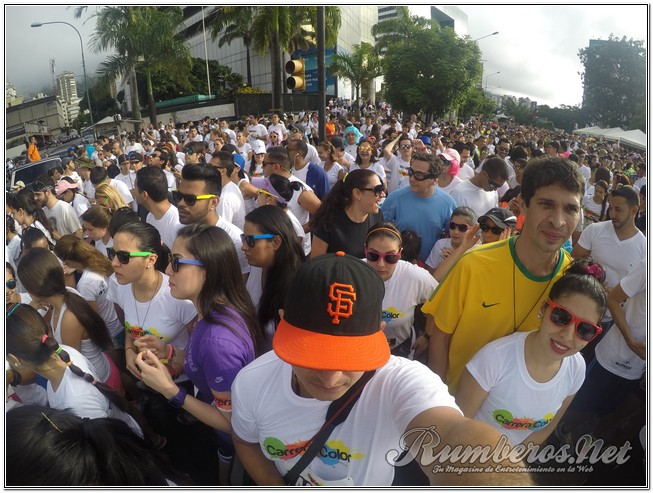 Sin duda, la Carrera Color fue una experiencia para toda la familia, sin importar edades. Mujeres, hombres y niños disfrutaron de un día completamente diferente en las calles de Chacao… Esto muy apesar de los grandes problemas de produccions y organizacion que hiceron que la carrera empezará casi media hora despues de lo estipulado, el arco de salida que no estaba montando, no habia animacion, ni nadie que diera la salida, dos camionetas atrevesadas justo en el canal de la salida, en los puntos de color no habia suficientes personas para esparcir el color a los corredores adicional a esto teníamos q hacer cola para q nos colorearan no habia seguridad en los cruces cercanos a la plaza Altamira no habia hidratacion real ya que un chupi de hielo no se le puede decir hidratacion… (Jonhatan Fajardo)
