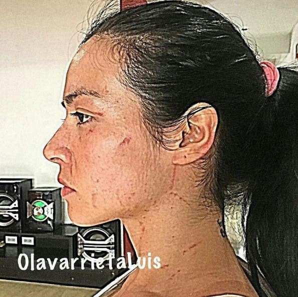 En la foto, que según los créditos fue tomada por el periodista Luis Olavarrieta, se puede constatar que la cantante recibió golpes y rasguños leves en la zona izquierda de su rostro, que inician en el ojo y bajan por su mejilla hasta finalizar en su cuello.