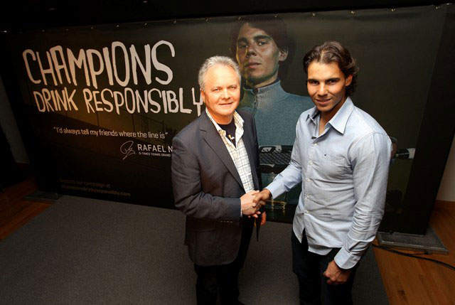 “Estamos muy emocionados por darle la bienvenida a Rafa a la familia de Bacardi como nuestro nuevo Embajador Global de Responsabilidad Social. Rafael Nadal es campeón mundial del tenis, su estilo de vida y dedicación reflejan los valores de nuestra compañía y de esta campaña», indicó Séamus McBride. «Su nombramiento mundial lo convierte en el campeón perfecto y en un modelo a seguir que nos ayudará a continuar difundiendo el mensaje que todos debemos saber, “en dónde trazar la línea” cuando de bebida se trata. Actualmente, llevamos a cabo el cuarto año de la campaña Champions Drink Responsibly, que presentamos desde sus inicios con Michael Schumacher y estamos encantados de que Rafael sea ahora quien lleve adelante nuestra campaña en los próximos años».