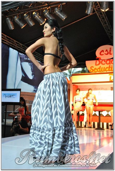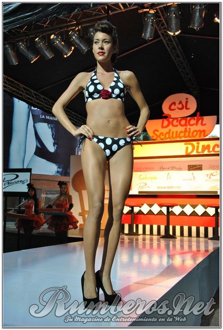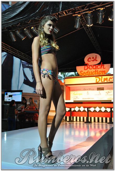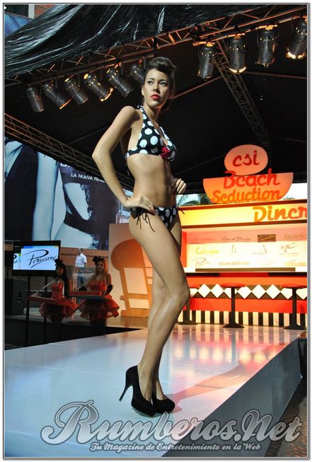La banda Poker tocó en vivo éxitos de los cincuenta y sesenta, para ambientar el desfile de las chicas pin up. La tienda Bikini.com abrió el Beach Seduction 2013, con una propuesta llena de color. Continuó Pelícano, que dejó ver trajes de baño de corte clásico, unicolores y los siempre bienvenidos lunares. Para finalizar, María Bonita by Phax, encantó con tonos vivos y estampados primaverales.