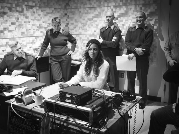 Beyoncé publicó en su sitio oficial una serie de imágenes que la muestran en la sesión de grabación del tema ‘The Star-Spangled Banner’, Himno Nacional de EU, tras generar controversia al trascender que hizo playback en su actuación durante la toma de protesta del Presidente Barack Obama.