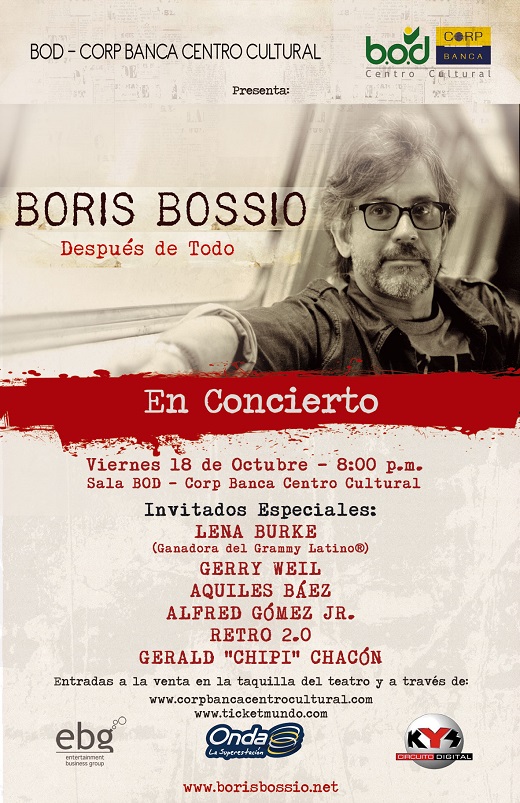El cantautor venezolano Boris Bossio radicado en Miami presenta en concierto su álbum “Después de Todo” en un espectáculo musical de altísima calidad a realizarse en la sala de conciertos del Centro Cultural BOD-Corp Banca el próximo viernes 18 de octubre a las 8:00 PM.
