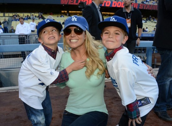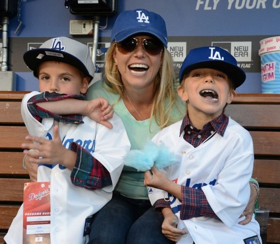 La cantante estuvo alentando a Los Dodgers de Los Ángeles junto a sus pequeños Sean Preston y Jayden James. En noticias relacionadas, Britney Spears anunció que su nuevo tema ‘Ooh La La’ para la secuela de ‘Los Pitufos’.