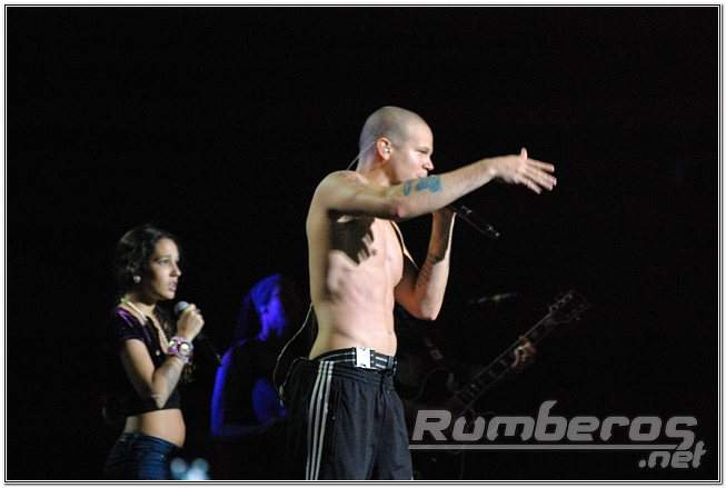 A las 7:30 p.m., puntuales para cumplir con las ordenanzas de Chacao que obligaban a terminar el recital a las 9:30 p.m. a más tardar, empezaron con la transmisión del video que exhibieron en Viña del Mar, el cual termina con una cuenta regresiva que puso al público a vibrar. Los músicos, los gritos y el pelón vocalista entró con su acostumbrado atuendo Adidas y “El baile de los pobres”. Lo que sucedió en adelante se repitió durante las dos horas de recital: un auditorio entero que se sabía las letras de pe a pa, hombres y mujeres intentando rapear y haciendo su mejor esfuerzo por seguirle el ritmo al cantante, muchos brincos, bailes y coreos.