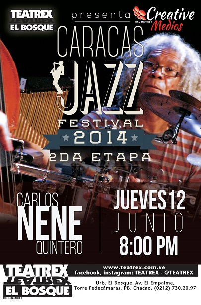 La primera gala que abrirá esta segunda fase del festival, será el jueves 12 de junio y estará a cargo del gran maestro de la percusión venezolana, Carlos ‘Nené’ Quintero junto a su banda. Años de trabajo, creatividad, seriedad, conocimiento de su profesión y buen gusto musical, le han permitido ser considerado el percusionista número uno del país. No hay instrumento de percusión que le sea ajeno a este talentoso músico, quien ha compartido tarima con artistas como Gerry Weil, Víctor Cuica, Luz Marina o con los recordados Paco de Lucía, Tito Puente y hasta Celia Cruz.