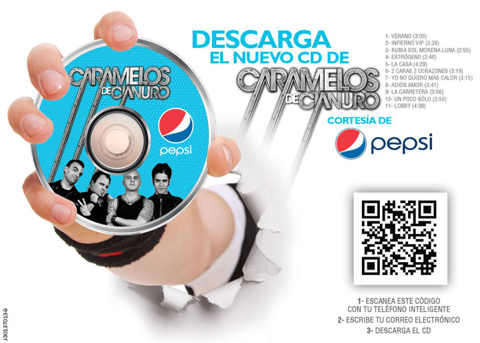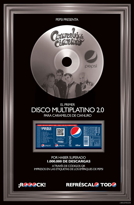Mediante la novedosa promoción de los códigos QR impresos en las etiquetas de las botellas de Pepsi, que combinó tecnología y música, a mediados del pasado mes de noviembre el nuevo disco de Caramelos de Cianuro alcanzó 1.043.796 descargas, 65% a través de celulares y 35% mediante computadoras (vía webcam).
