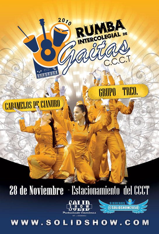 Este 2010, la tan esperada “Rumba Intercolegial de Gaitas» producida por SOLID SHOW PRODUCCIONES arriba a su noveno año y para celebrarlo el próximo domingo 28 de noviembre (día de la gran final) se unirán, a partir de las 3 de la tarde, nuevamente en la Terraza del C.C.C.T, dos de las agrupaciones venezolanas más “pegadas” del momento: Caramelos de Cianuro y Treo.