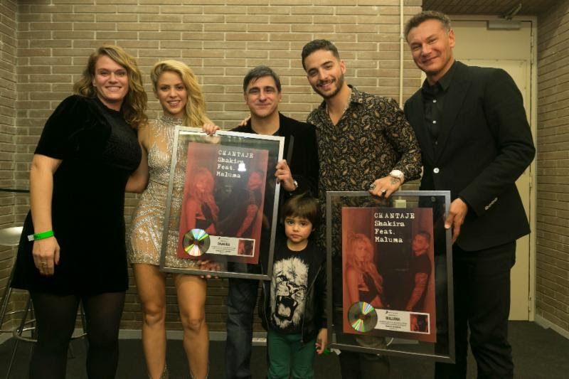 (Shakira y Maluma junto a Afo Verde, Walter Kolm management de Maluma)