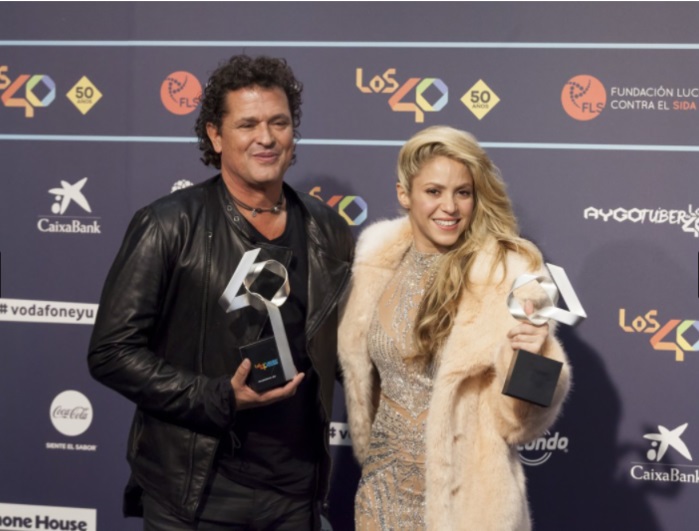 Shakira y Maluma por «Chantaje», y Carlos Vives junto a Shakira por «La Bicicleta», resultaron laureados la anoche del jueves en Barcelona, donde coincidieron con motivo de su participación en la gran fiesta de Los 40 Music Awards en el Palau Sant Jordi.