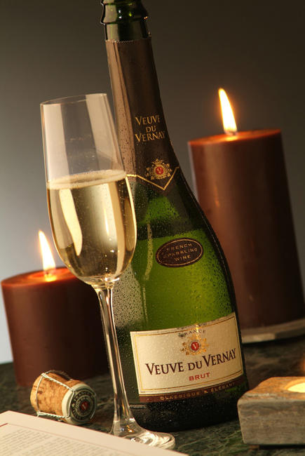 - Veuve du Vernay Brut de color pajizo pálido, fresco, frutoso y floral con aromas delicados de manzana y pera acompañados de suaves burbujas aterciopeladas. El vino perfecto si se sirve como aperitivo, con ensaladas, pescado, carnes blancas o postres de frutas.