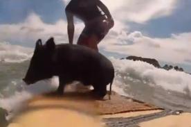 El tierno cerdo, de nombre ‘Zorro’, ha empezado a surfear desde su tercera semana de vida. Sin embargo, Matthew reveló que cuando el animal se encuentra sobre la tabla tiene un poco de miedo.