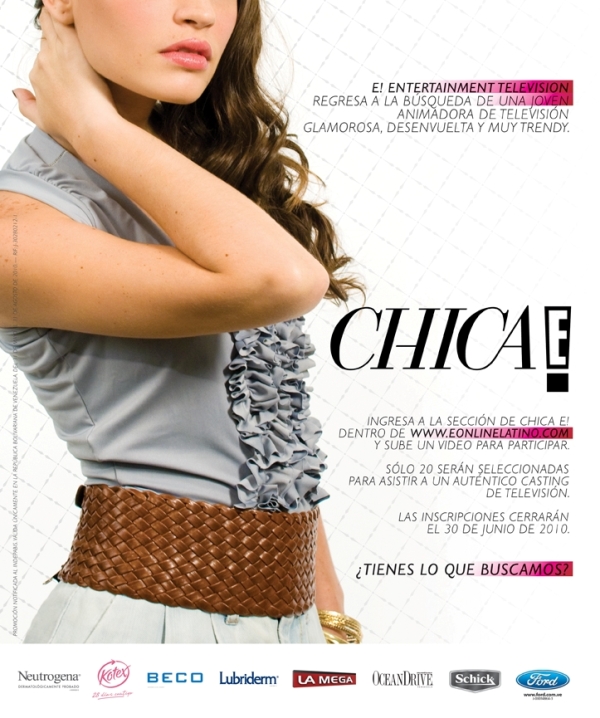 Ella y muchas otras tendrán la oportunidad de participar en el concurso más importante de E! Entertainment Television, Chica E! Venezuela. La convocatoria inicia este 7 de junio y, hasta el 30 del mismo mes, las candidatas podrán inscribirse y demostrar si realmente tienen lo que se necesita para convertirse en animadoras de televisión. El objetivo es encontrar a una talentosa joven que se identifique con la audiencia del canal y refleje los valores de E! y de los anunciantes y aliados de este proyecto: Neutrogena, Kotex, Lubriderm, Beco, Shick Quattro for Women, Ford Venezuela, Ocean Drive y La Mega.