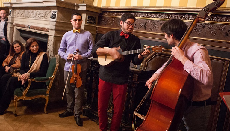 La noche fue amenizada con diversos géneros de música venezolana, interpretados por el Cuarteto Waraira. Violín, oboe, bajo y el indispensable cuatro de Leo Rondón despertaron la memoria de los criollos y la curiosidad de los galos. La destreza de estos jóvenes instrumentistas impresiono a los invitados, con arreglos de piezas tradicionales que, en la distancia, retumban con mayor fuerza.