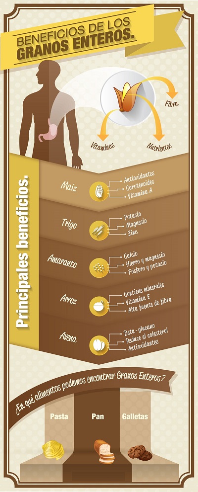 Para aprovechar todos los beneficios que aportan, no es necesario consumirlos en su estado natural, también es posible triturarlos, partirlos o molerlos para convertirlos en harina, galletas y otros alimentos. Eso sí, el producto final debe contener la misma composición nutrimental del grano original. A continuación te presentamos una lista de granos enteros que puedes incorporar en tu dieta y sus principales beneficios. Estamos seguros que hacerlo no será difícil.