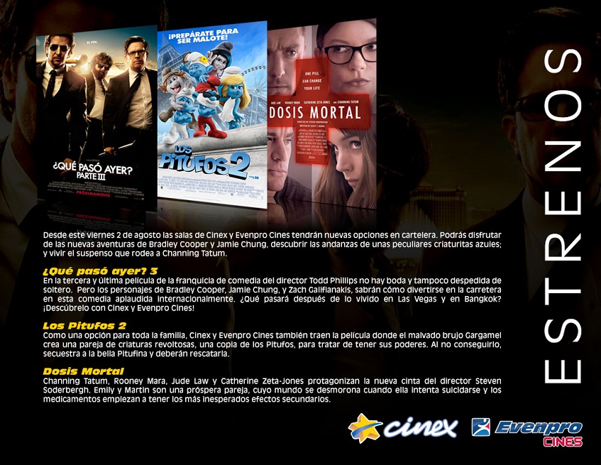 Podrás disfrutar de las nuevas aventuras de Bradley Cooper y Jamie Chung, descubrir las andanzas de unas peculiares criaturitas azules; y vivir el suspenso que rodea a Channing Tatum.
