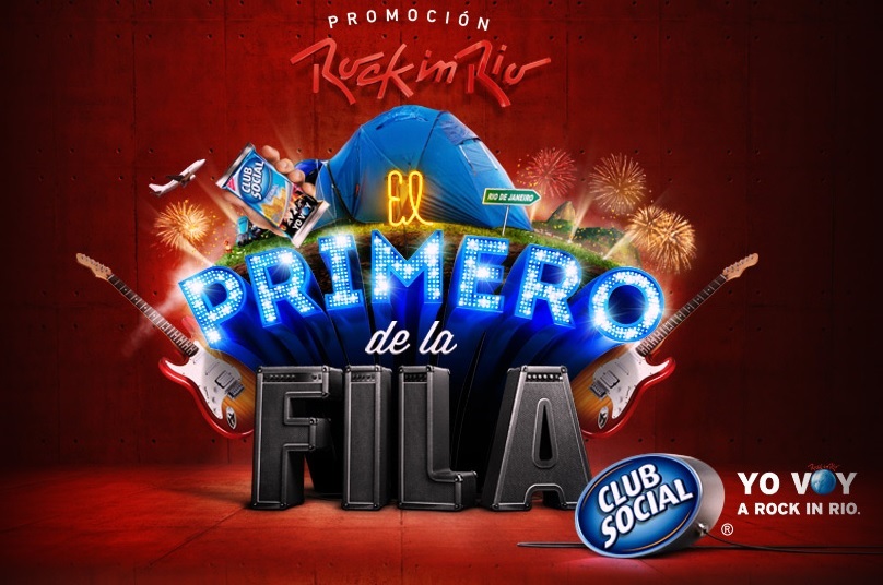 Caracas. 1 de Julio de 2013.- Club Social, única por su sabor dulce salado, patrocina el mayor festival de música y entretenimiento del mundo “Rock in Río 2013”, llevando a los tres fanáticos que resulten ganadores de la promoción El primero de la Fila de Club Social®.