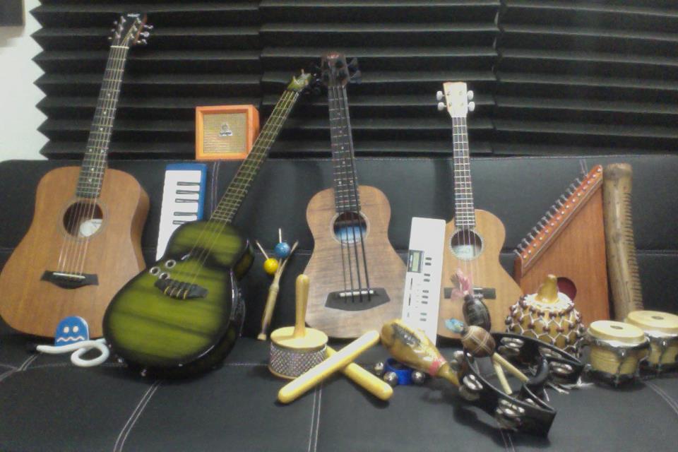 Para hacer esta banda sonora utilizamos una metodología «cucú pop». Dijimos: solo vamos a trabajar con los instrumentos que quepan en el sofacito del estudio (básicamente porque si trabajábamos con más, nos íbamos a salir horriblemente del presupuesto… ustedes saben: la inflación, la devaluación, la plaza altamira, mi tía que tiene un sobrino militar y le informaron que viene otro paquetazo, etc.). Así que eso hicimos. Las 9 canciones que escucharán a continuación se hicieron solo con esto: http://on.fb.me/17YWyJ5
