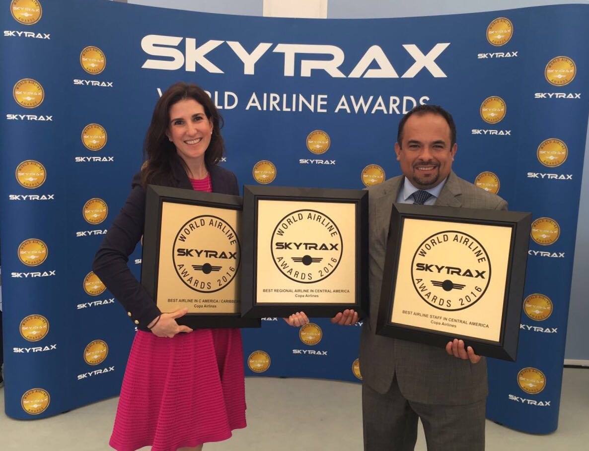 Copa Airlines ha sido reconocida por Skytrax con tres premios, “Mejor Aerolínea de Centroamérica y el Caribe”, “Mejor Personal de Aerolínea en Centroamérica” y “Mejor Aerolínea Regional de Centroamérica”