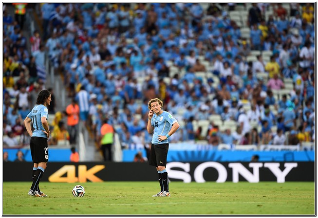 Uruguay: Fernando Muslera, Martín Cáceres, Diego Lugano, Diego Godín, Maximiliano Pereira, Walter Gargano (Álvaro González, 60) , Egidio Arevalo, Cristian Rodríguez, Cristhian Stuani, Edinson Cavani y Diego Forlán (Nicolás Lodeiro, 60) .