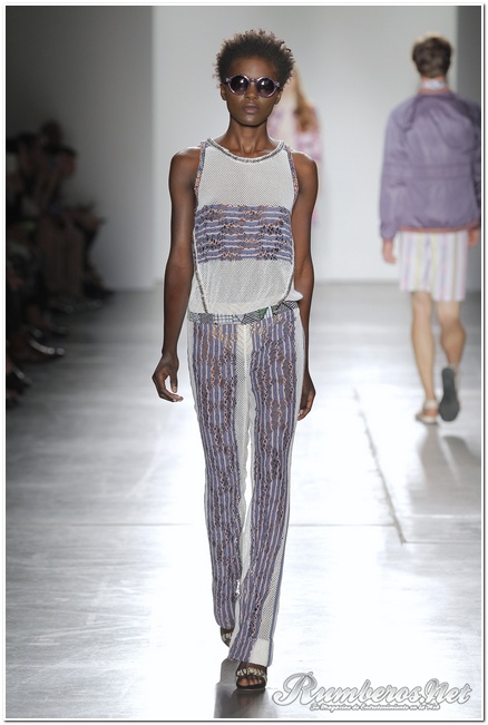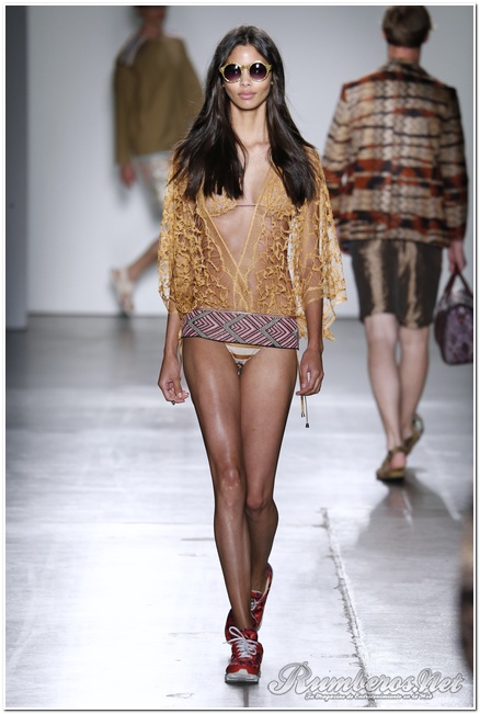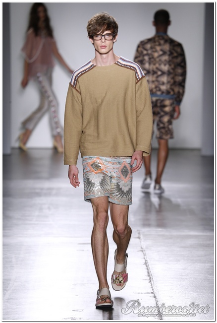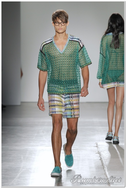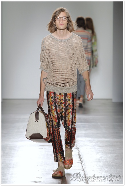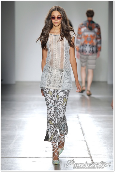 Unos looks que destacan por la delicadeza de sus tejidos como la blonda o las mallas abiertas de tricot, antes de uso exclusivo para la mujer, que dejan entrever también la piel de los cuerpos masculinos en la pasarela. El concepto tripleta, en elargot de la firma, o tres prendas unidas por el mismo tejido y gráfica en un mismo look forman un concepto visual muy compacto al más puro estilo Custo Barcelona.