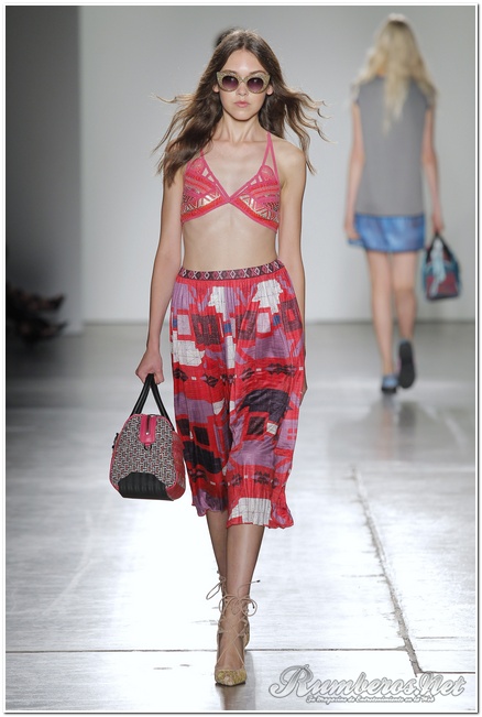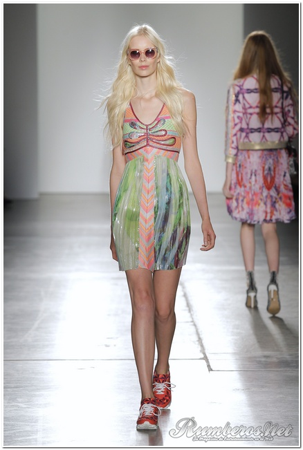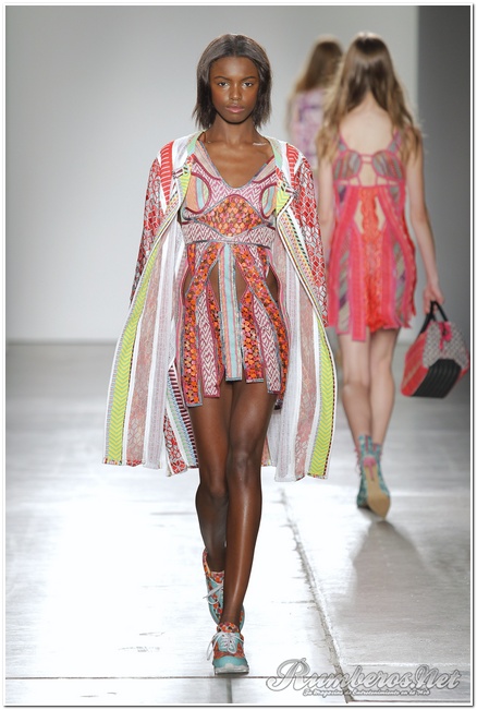 La paleta de colores que tiñe los diferentes looks se inspira en la naturaleza: el rosa pétalo, verde esmeralda, violeta, blanco gardenia, malva, fucsia, lima, limón, azul mediterráneo y mandarina armonizan las prendas. El negro, con toda su fuerza y personalidad, marca una parte importante de los looks sobre la pasarela, pero los colores tierra matizados por el sol del atardecer unidos a las texturas de la tricotosa son otra de las fórmulas ganadoras de Custo.