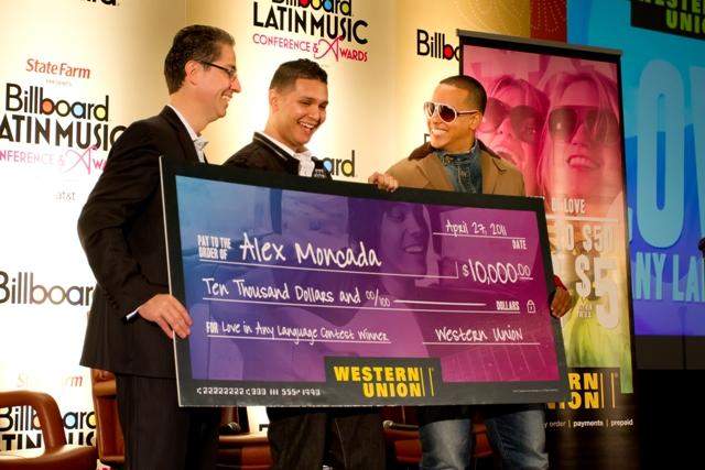 ENGLEWOOD, CO, 27 de abril del 2011.- The Western Union Company (símbolo bursátil en la Bolsa de Valores de Nueva York: WU), compañía líder en el segmento de transferencias de pagos globales de dinero, y el ganador del premio Grammy Latino Daddy Yankee dieron a conocer a Alex Moncada de Alexandria, Virgina como el ganador del premio principal del concurso “Amor en Mil Idiomas’, quien comprobó que sabe como “¡Cantarlo, Gritarlo y Enviarlo!” con un video musical único. El anuncio del ganador fue dado a conocer en vivo el día de hoy en la conferencia de prensa Billboard de la Música Latina 2011 en Miami Florida por Daddy Yankee, el artista urbano latino de la década. La campaña nacional Amor en Mil Idiomas fue creada para expresar el amor de una manera universal y como tributo a las mamás, familia, amigos y seres queridos.