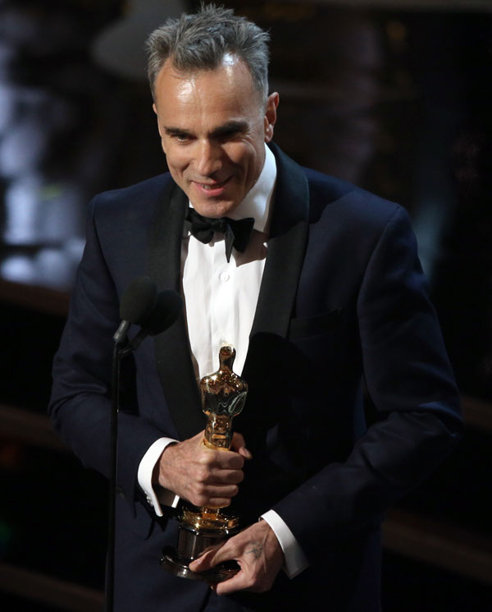 Aunque la mayoría de los pronósticos lo colocaban como gran ganador de la noche, frente a nombres de la talla de Joaquin Phoenix o Hugh Jackman, el actor pareció sorprenderse al subir al escenario. Con todo el patio de butacas en pie, el actor agradeció con mucho humor su premio, ya que aseguró que la primera opción de Steven Spielberg para interpretar a Abraham Lincoln había sido Meryl Streep, quien le entregó la estatuilla y con quien se fundió en un cálido abrazo, después de besar en los labios a su compañera de reparto, Sally Field, y a su mujer, Rebecca Miller, a quien le dedicó el Óscar.