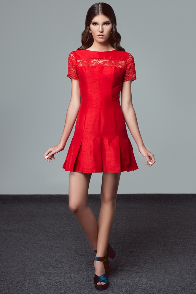 Tomando como partida la forma de los pétalos, se buscó evocar su silueta en las faldas, creadas al experimentar con cortes que brindan volumen y caída en cada movimiento. Este, es solo uno de los elementos con los que se crearon piezas que aportan un aura de seducción y seguridad a quien las lleve.