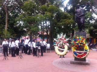 Posteriormente todas las autoridades municipales se dirigieron a la plaza Bolívar a realizar una ofrenda floral ante la estatua del Libertador Simón Bolívar. En este acto participó la Banda de Conciertos de El Hatillo.