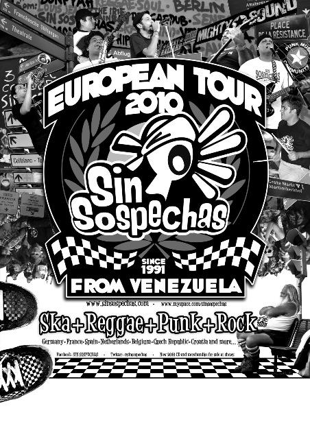 Especial.- Junio y julio se han vuelto meses imprescindibles para la proyección de la cultura venezolana. Esta no es tarea pendiente para la banda SIN SOSPECHAS, pues desde 1.999 apuesta por la internacionalización, organizando con una tenaz autogestión sus incursiones en el viejo continente. Los hechos hablan por si solos: 30 conciertos (al menos 5 de ellos festivales de gran prestigio), más de 25 ciudades en 8 países estrenándose este año en Bosnia y Croacia, y 12.000 kilómetros recorridos en 9 semanas, muestran que los “Sinsos” van en serio, pues quieren llevar su música más allá de las fronteras.