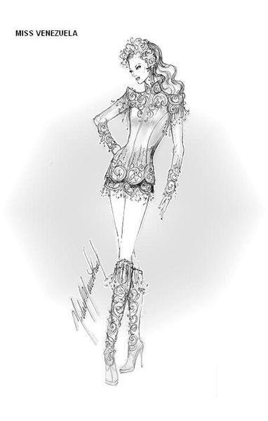 ElMosquera also represented Venezuela in the Reinado Internacional del Café 2010 pageant, in Manizales ( Colombia ), on January 9, 2010, where she placed as the 3rd Runner-up. [ 5 ] prestigioso y reconocido diseñador venezolano, Nidal Nouaihed, en un alarde de posmodernidad, utilizando como inspiración el Liqui- Liqui, ha reinterpretado este traje originalmente masculino, realizando una suntuosa versión femenina. Dos pieza de lino crudo bordado con líneas en hilos dorados, metalizados.