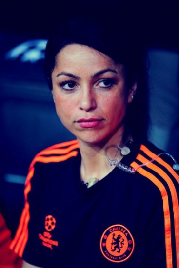 Se trata de la fisioterapeuta del cuadro inglés, de nombre Eva Carneiro. Es española y tiene 31 años. Trabaja con el primer equipo ‘Blue’, tanto en la Premier League y en la Liga de Campeones.