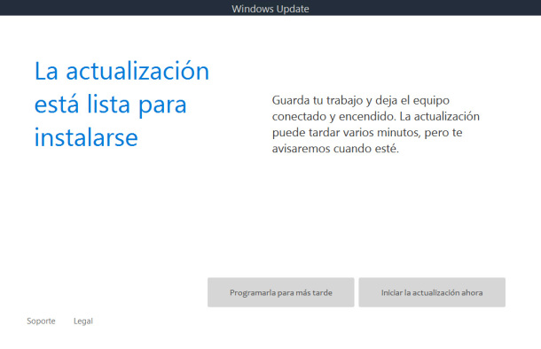 Una vez finalizado el proceso de descarga (unos 3GB) solo deberás decidir si quieres proceder con la instalación para comenzar a actualizar tu equipo, o si prefieres posponerla para más tarde.