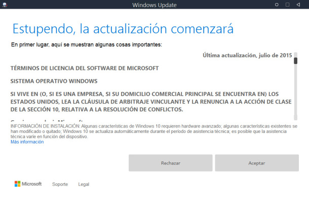 Nota: no hay manera de apresurar la actualización a Windows 10, simplemente deberás esperar a que Windows Update te avise que está disponible para poder descargarla, así que si tienes rato esperando y nada que se descarga, no desesperes que llegará, lamentablemente para no colapsar los servidores y poder ofrecer la experiencia más placentera de actualización a todos, se libera el paquete por lotes de usuarios, así que podrías quedar en cola incluso por días, si tienes la mala suerte.