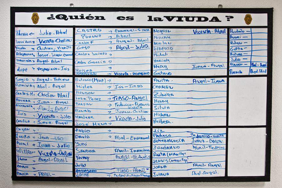 En las oficinas de producción, ubicadas en las instalaciones del canal, el equipo instaló una pizarra, donde cada empleado tiene la opción de colocar sus dos opciones, de quienes cree, pueden ser las Viudas Negras. El monto por participante fue de Bs.F. 100,oo, y ya hay un acumulado de Bs.F. 9.000,oo .