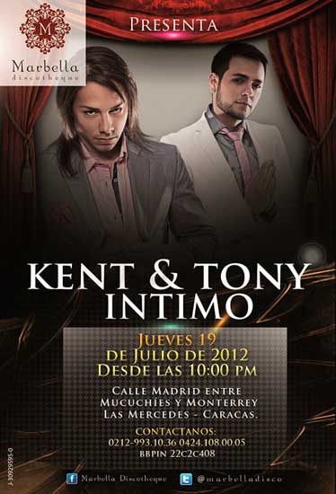Hoy sera una noche de magia y calor en compañia de Kent & Tony »El maximo duo»… Estarán presentandose hoy en intimo con todos sus éxitos como Mordisquito