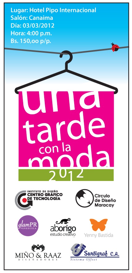 Las entradas para la pasarela están ya a la venta en la sede del Instituto de Diseño Centro Gráfico de Tecnología, en la calle adyacente a la Maestranza Cesar Girón y tiene un valor de 150Bs. La sala de exposiciones es de entrada gratuita. Todos los detalles también puede encontrarlos en Twitter: @CdisenoMaracay.