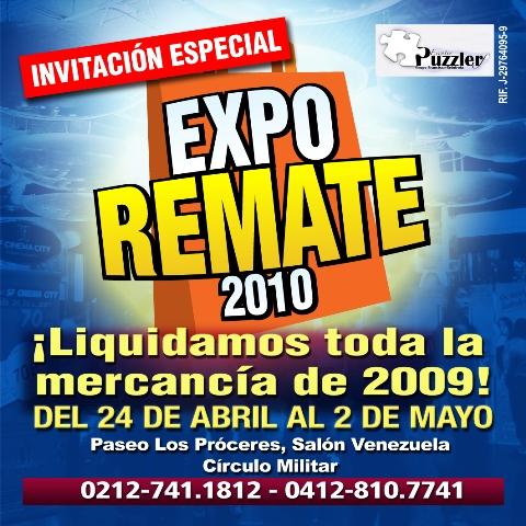 Por primera vez en su rama y por nueve días podrá la familia venezolana disfrutar en las Instalaciones del Círculo Militar de Caracas Expo Remate 2010, donde expondrán su mercancía los mejores fabricantes y distribuidores. Esto, gracias una vez más a la producción de Puzzlerf Eventos y el Grupo Francisco Rentota.