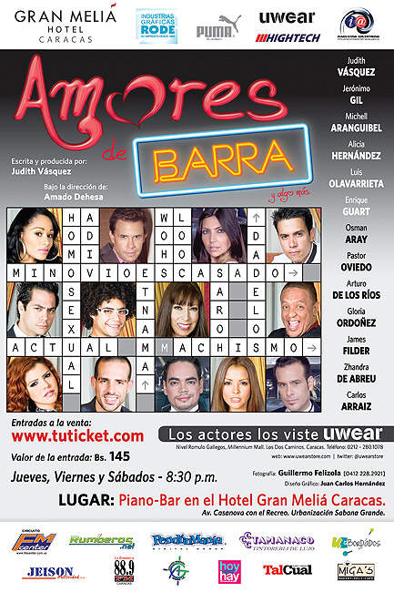 Llega al fin de su Segunda Temporada en el Hotel Gran Meliá Ccas,Amores de barra…y algo más…. El exitoso Café Concert Amores de barra…y algo más llega al fin de su Segunda temporada en el Hotel Gran Meliá Caracas.