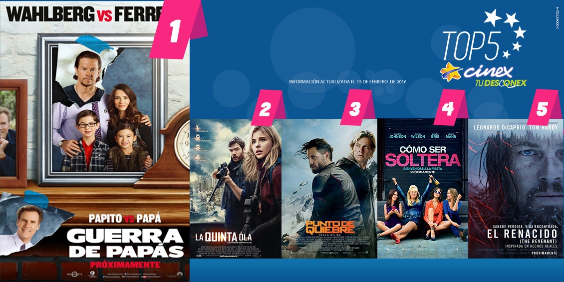 En la semana del amor y la amistad los venezolanos celebraron a carcajadas, pues »Guerra de Papás» consigue el primer lugar del Top 5 de la taquilla venezolana por segunda semana consecutiva. La cinta protagonizada por Mark Wahlberg y Will Ferrell, trae a la pantalla de Cinex a Brad Taggart (Ferrell), un tranquilo ejecutivo de una estación de radio, que lucha por convertirse en un gran padrastro.