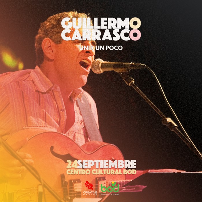 El cantautor venezolano Guillermo Carrasco se presentará el 24 de septiembre a las 5 de la tarde, en la sala de conciertos del Centro Cultural BOD, en un espectáculo que lleva por nombre “Unir un poco”.