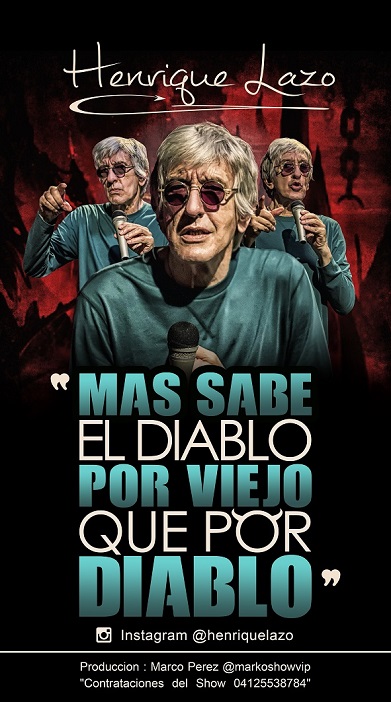 Caracas, Marzo 2015 .- Henrique Lazo sigue llevando experiencias de vida a toda Venezuela con su show “Más sabe el diablo por viejo que por diablo”. Los días 20, 21 y 22 de marzo se presentará nuevamente en Caracas, pero esta vez para compartir con el público en el Teatrex del Hatillo. Las entradas para estas funciones ya están a la venta en www.ticketmundo.com y en taquillas del teatro.