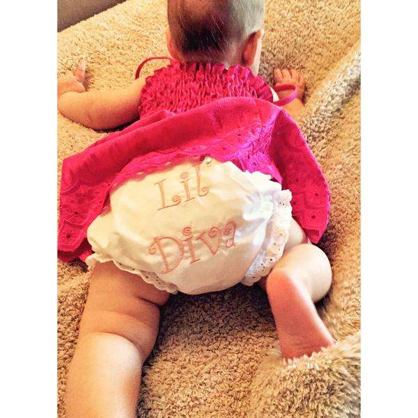 En la cándida instantánea aparece la pequeña intentando gatear y se puede leer la ropa interior que sobresale de su vestido rosa la frase: ‘Lil’ Diva’.